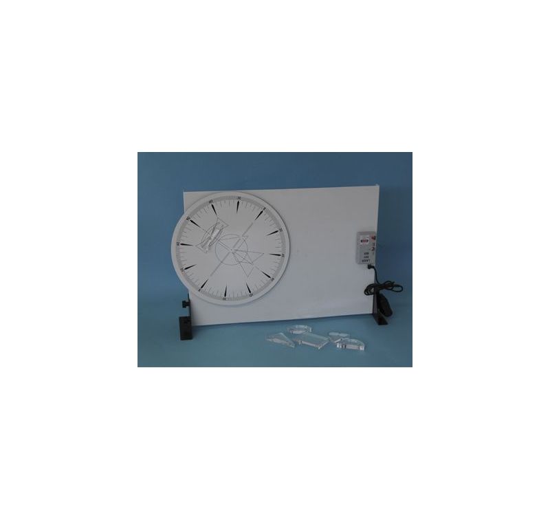 Disc graduat blanc per a mesurar angles de reflexió, refracció i angles entre raigs. Dim. 170x170 mm.