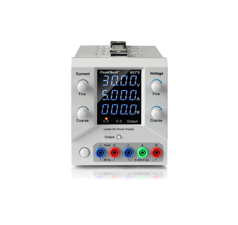Aquesta font d'alimentació lineal regulada per a laboratori ofereix un rendiment fiable i una gran seguretat gràcies a un transformador de seguretat integrat. Amb una sortida ajustable de 0 - 30 V i 0 - 5 A CC, és versàtil i ideal per a diverses aplicacions al laboratori i al taller. Disposa d'una funció de preselecció de corrent que permet ajustar el valor de corrent desitjat abans de connectar la càrrega. Les pantalles LED de quatre dígits en blau indiquen de manera clara i precisa la tensió, el corrent i la potència. El botó de sortida només envia els paràmetres seleccionats a la sortida després d'haver-los ajustat, cosa que evita canvis involuntaris i proporciona seguretat addicional. El ventilador amb control de temperatura sʻajusta automàticament a la temperatura de lʻaparell, garantint una refrigeració eficaç i un funcionament silenciós. Amb dos potenciòmetres per a l'ajust gruixut i fi del corrent i la tensió, els valors desitjats poden ajustar-se amb rapidesa i precisió. Aquest model també ofereix una interfície USB per al control remot i la lectura mitjançant un PC.