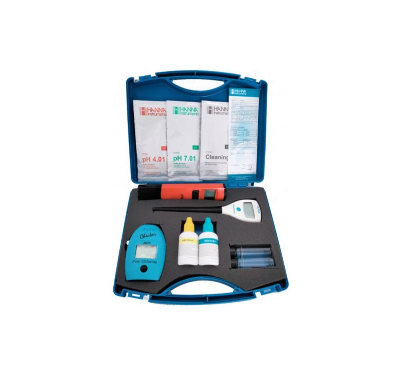 Set in a case for measuring free chlorine, pH and temperature. Includes: