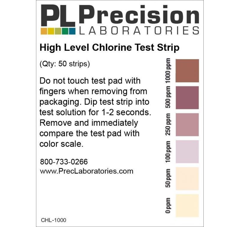 Chlorine test strips 0-0.5-1-3-5 ppm CHL-05. Tub 50 units