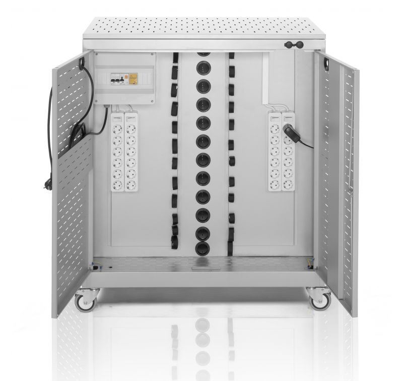 MMT-1000 charging cabinet. Two sides 24 computers. Base 4x6 sockets