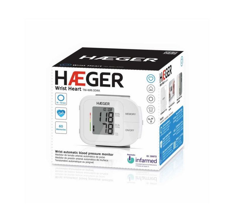 Haeger TM-WRI digital wrist blood pressure monitor. Automatic 2x60 memories