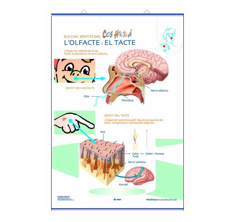Primary anatomy mural 70x100 cm. The senses of touch, taste and smell
