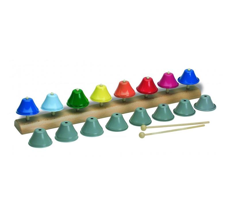 Painted steel note finder bells with support. DO-DO 8 colored notes