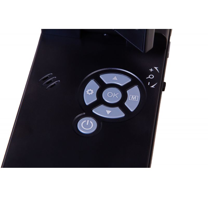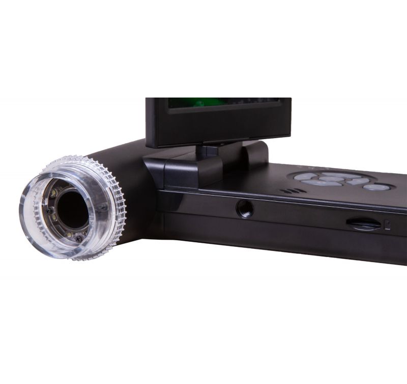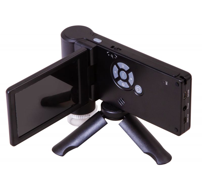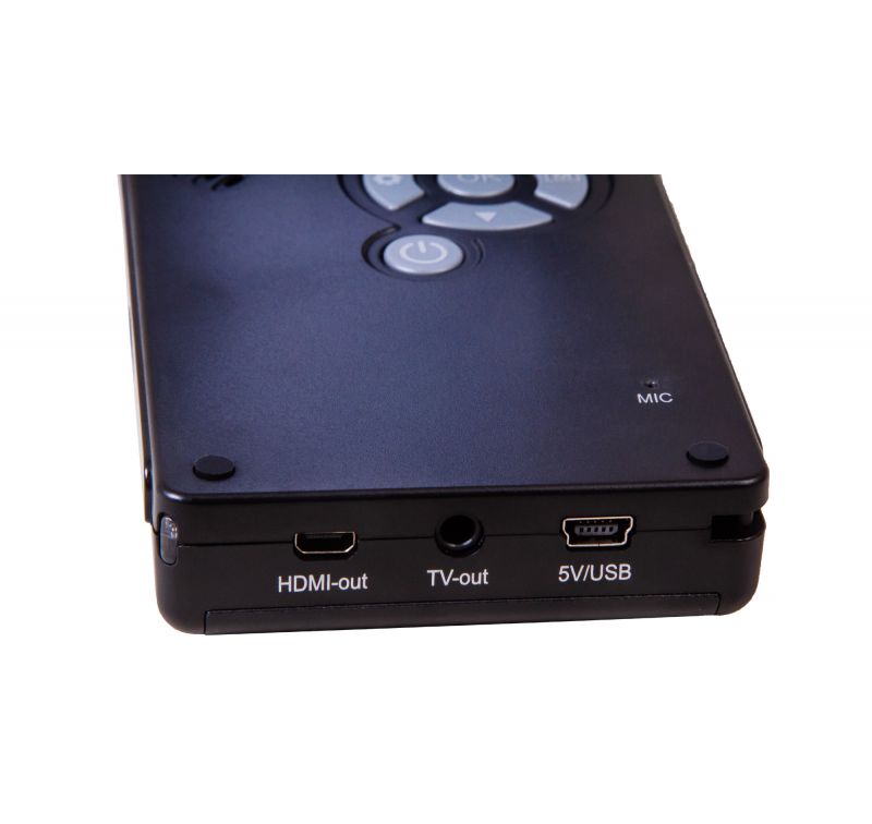 The images are captured by a camera equipped with a 5MP sensor. The camera transmits high-resolution color images to a built-in LCD screen. A rotating screen can easily be set to the most comfortable position for work. Additionally, the microscope can capture images and record videos (memory card required, purchased separately). This is done using a single button, located on the body of the microscope. If necessary, the Levenhuk DTX 700 Mobi model can be connected to an external device: monitor, TV or computer. All necessary cables are already included in the kit.