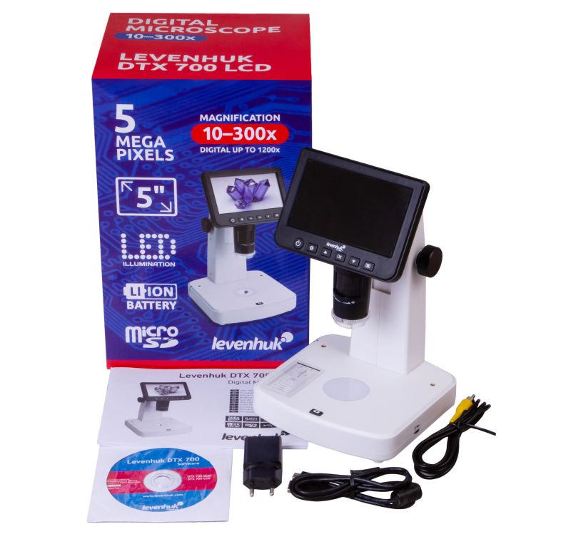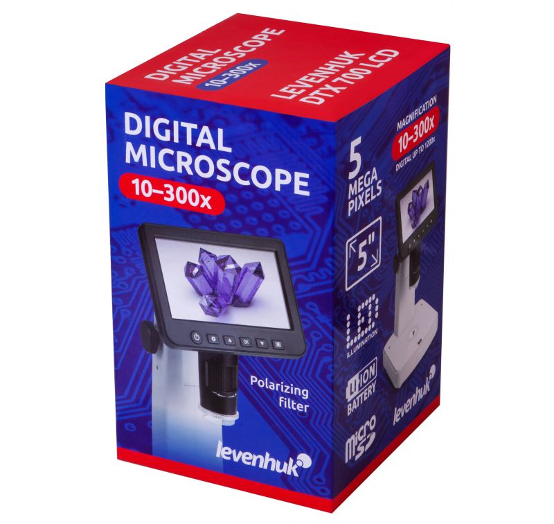 The Levenhuk DTX 700 LCD digital microscope is designed to study non-transparent objects. It is suitable for working with jewelry pieces, electronic boards, minerals, coins and metal sections. This microscope is also useful for home use, for example to study insects and plants. The Levenhuk DTX 700 LCD model is equipped with an LCD screen, which reduces eye strain during prolonged work, and is more comfortable than looking through the eyepiece of a classic microscope.