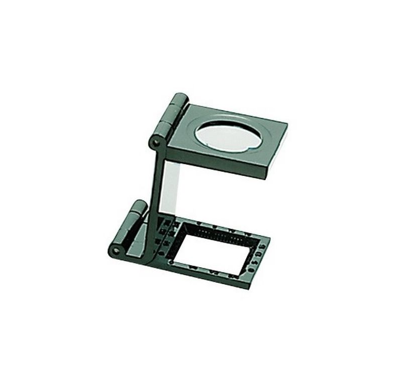 Folding magnifying glass with 6x glass lens. Aluminum base 25x25 mm