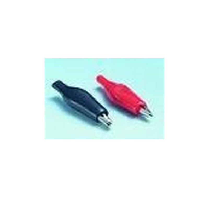 Alligator clips with insulated handles, 4 mm banana pitch. Red