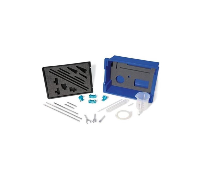 Set of basic devices for the STUDENT Mechanics (U60020) and Thermology (U60040) Kits. Composed of a robust plastic base plate, anodized aluminum support material and additional components, which can be used in both Mechanics and Thermology. In a stable plastic box with foam insert shaped according to the devices and transparent lid. Includes a CD with experimentation instructions.