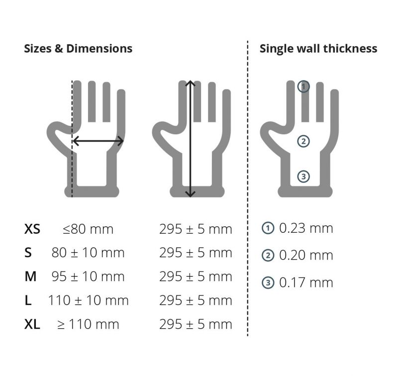 Fit for special purpose: gloves are designed to be tight fitting to the hand, therefore they may not meet the requirements of EN420.