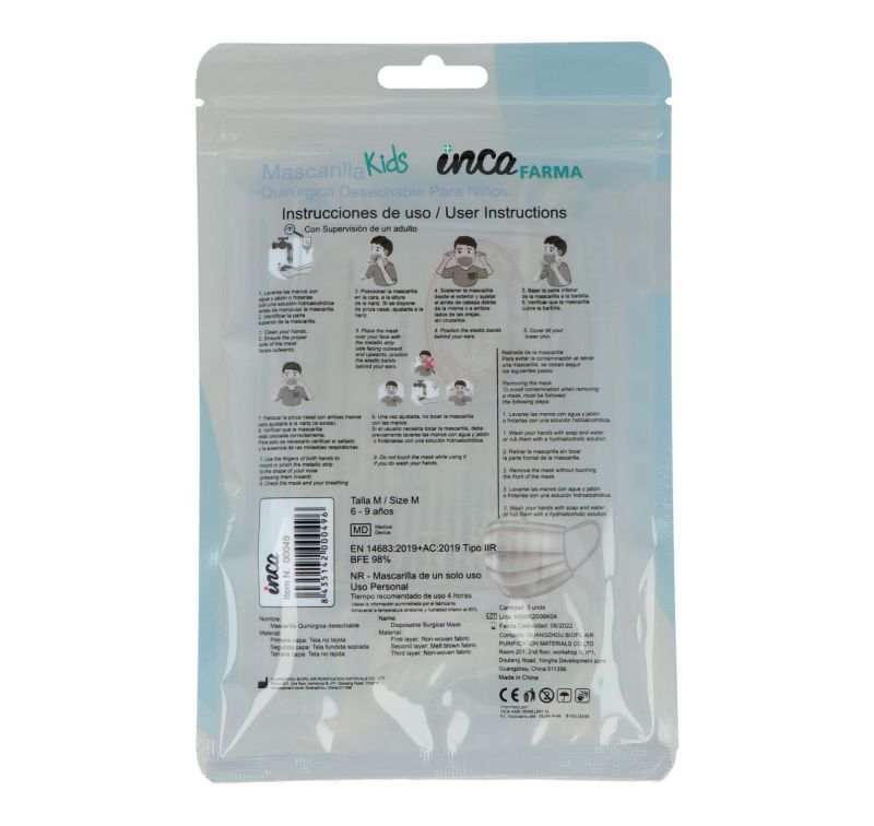 Three-layer disposable medical mask made with top quality materials that guarantee maximum protection against bacteria and particles. They comply with the European regulations for surgical masks EN 14683:2019+AC:2019, and have a CE certificate.