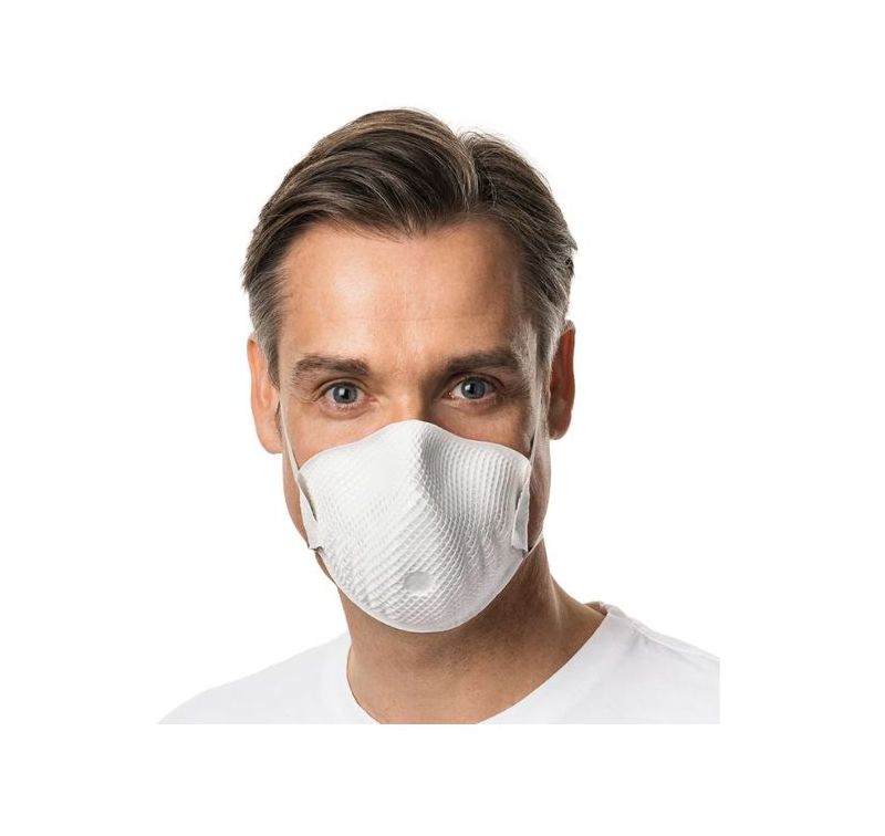The self-filtering masks have been designed to effectively retain suspended dust particles, mists and fumes. They are very light, comfortable and offer very low breathing resistance. They are classified into three levels of protection according to their effectiveness: FFP1, FFP2 and FFP3 (Filtering facepiece). The application types of the FFP2 NR model are sanding of paint layers and coatings, scraping and sanding of adhesives, cutting and drilling of wood, fumes from welding, waste management, fumigation of pesticides (water-based), animal feeding