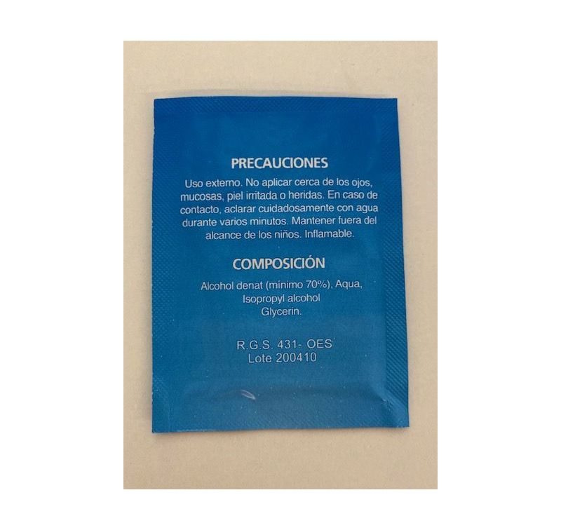 Antiseptic wipes ideal for hand and skin disinfection.Each wipe is impregnated with 4.5 ml of solution