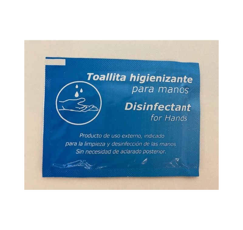 Hydroalcoholic hand sanitizer wipes. Bag of 100 units.