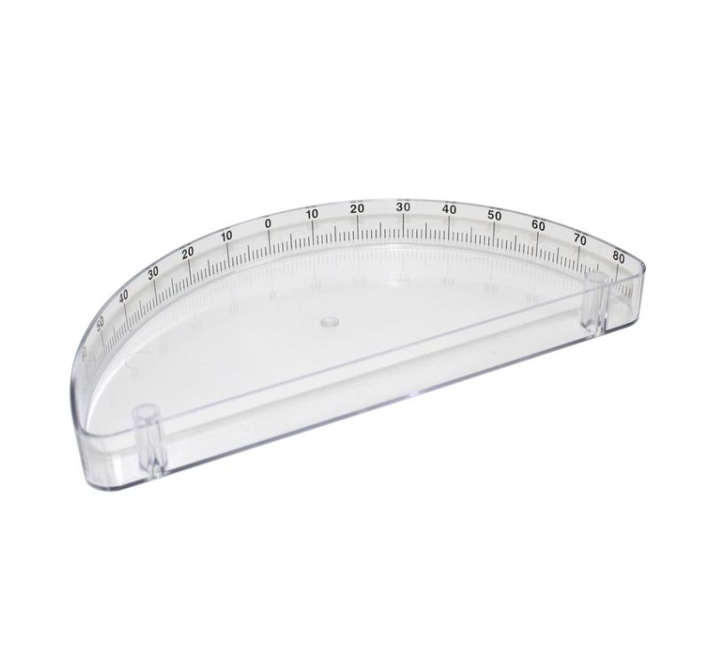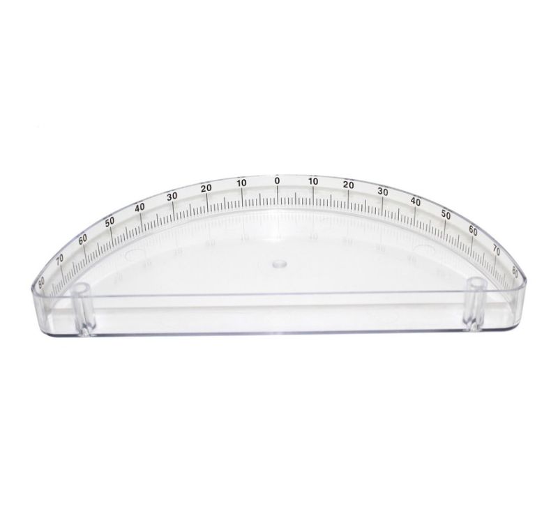 Disco graduado blanco para medir ángulos de reflexión, refracción y ángulos entre rayos. Dim. 170x170 mm.