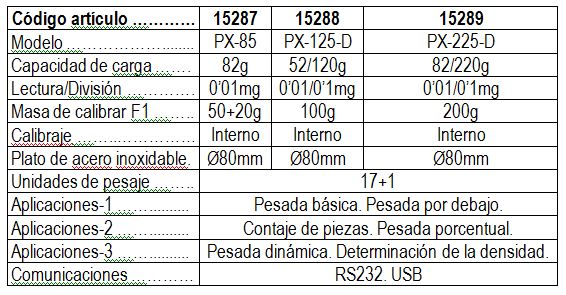 Tabla comparativa balanzas electrónicas analíticas Ohaus: