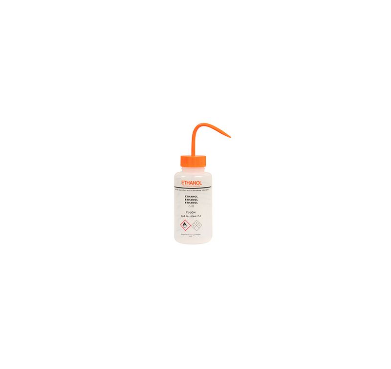 La impresión del frasco incluye el nº CAS (Chemical Abstract Service), los códigos y simbolos NFPA (National Fire Protection Association), símbolos de los equipos de protección y frases de peligrosidad. Tapón de rosca de color naranja para una fácil identificación.