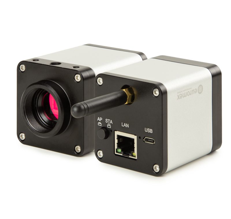 La cámara de CMEX-5 WiFi-4 está equipada con un sensor Sony CMOS de 4 MP con 12 bits de conversión de escala de grises y una profundidad de color de 24 bits. Esta cámara emite la imágen por WiFi codificado H.264 ofreciendo imágenes de alta resolución de manera simultánea a varios periféricos como pueden ser smartphones, tablets u ordenadores con sistemas operativos iOS, Android y Windows